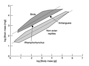 Diagrama do sistema respiratório e sacos aéreos de pterossauros incluindo Anhanguera. O sistema neurológico estudado por Witmer et al. (2003) trabalhava em conjunto com este aparelho respiratório para controlar o voo ativo.