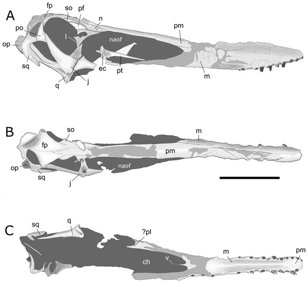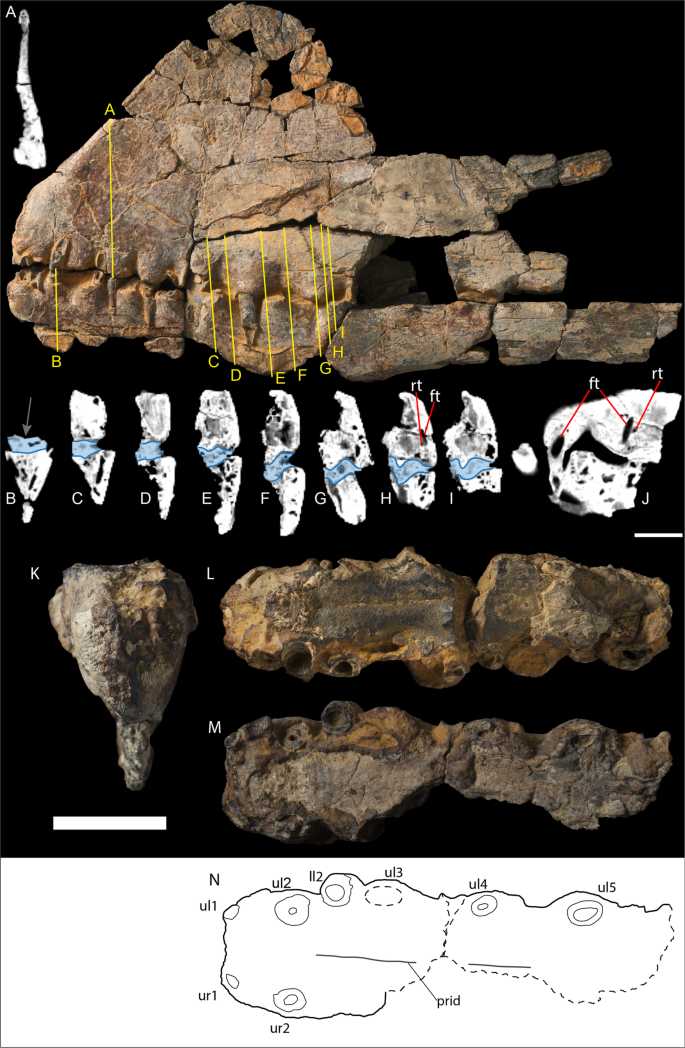Completude: ~50% (crânio e elementos pós-cranianos parciais)