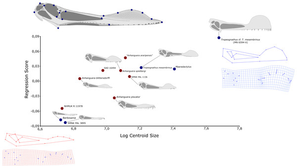 Material craniano de Caiuajara dobruskii mostrando mudanças anatômicas durante a ontogenia, incluindo o desenvolvimento das cristas. Duque et al. (2022) empregaram abordagens similares de análise ontogenética ao estudar as cristas de Anhanguera.
