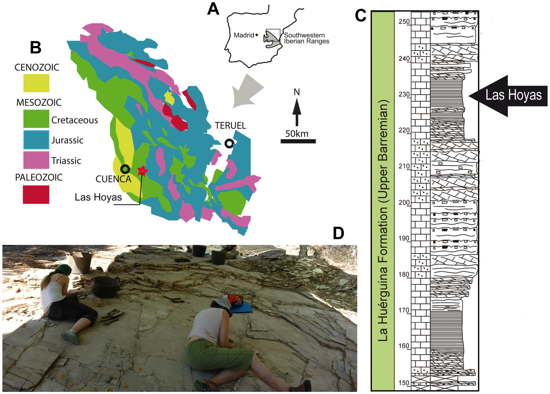 A Formação La Huérguina (Barremiano Superior, ~125 Ma) é um dos mais importantes Konservat-Lagerstätten do Cretáceo Mundial. Localizada na Serranía de Cuenca, Espanha, a formação consiste em calcários finamente laminados depositados em lagos rasos e pântanos subtropicais. A preservação excepcional dos fósseis, incluindo tecidos moles, se deve ao desenvolvimento de tapetes microbianos no fundo dos lagos que selavam rapidamente os organismos mortos, inibindo a decomposição. Além do Concavenator, a formação produziu aves primitivas (Iberomesornis, Eoalulavis), pterossauros, crocodilos, peixes e a angiosperma aquática primitiva Montsechia vidalii, a flor mais antiga do mundo.