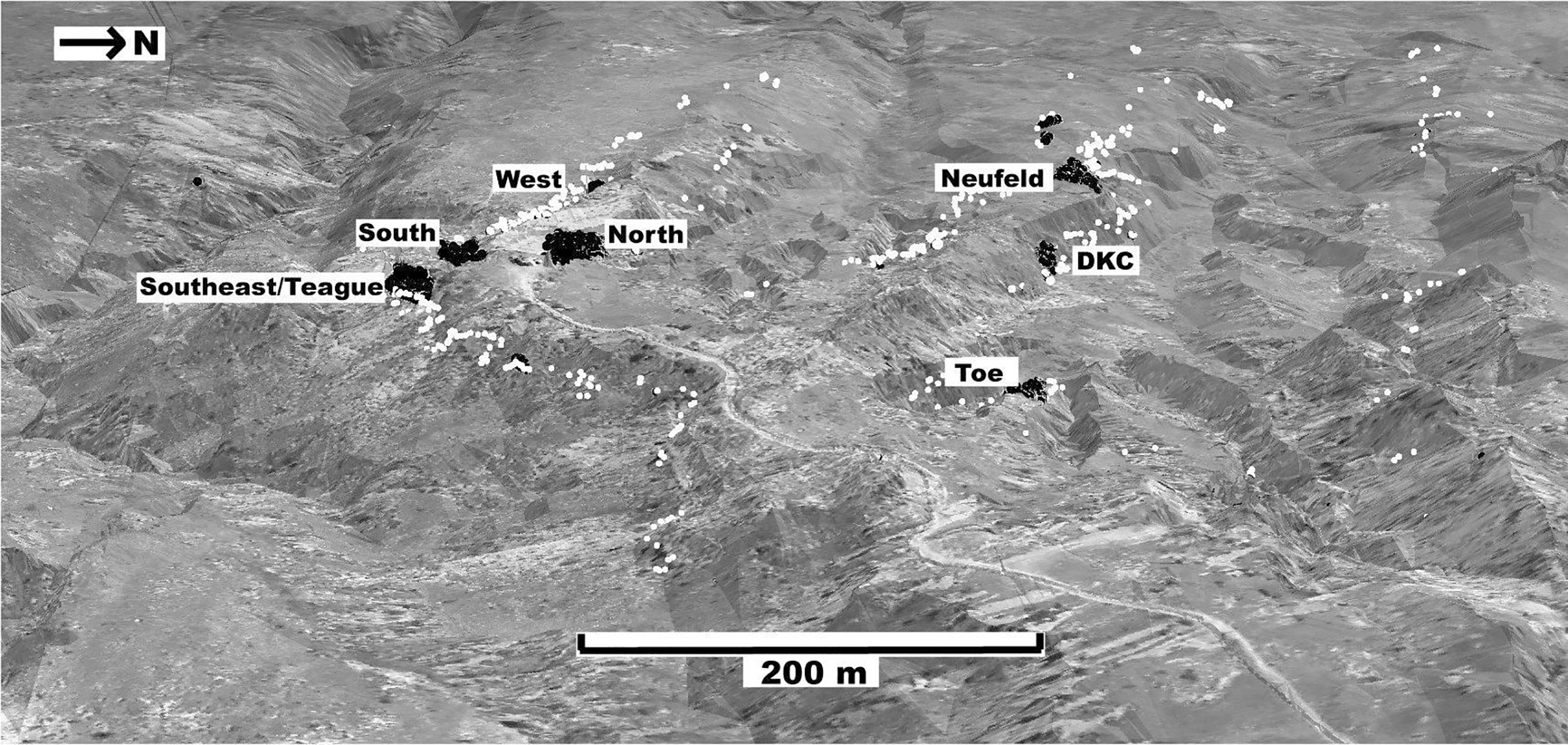 Snyder et al. descrevem a extraordinária Pedreira Hanson Ranch na Formação Lance do Wyoming, que produziu mais de 13.000 elementos fósseis predominantemente de Edmontosaurus annectens ao longo de 25 anos de escavação. Apesar da preservação excepcional com mínima abrasão ou intemperismo, os ossos estão completamente desarticulados. A análise revela que o 'peneiramento hidráulico' removeu as seções articuladas antes ou simultaneamente ao transporte dos ossos restantes por fluxo de detritos subaquático. A distribuição seletiva de elementos — púbis, ísquios, escápulas e ossos longos abundantes; vértebras, ílios e chevrons raros — reflete mecânicas de transporte preferenciais comuns em depósitos hadrossaurídeos do Cretáceo superior em todo o mundo. O estudo demonstra como um único depósito monodominante pode revelar comportamento gregário e estrutura populacional de Edmontosaurus.