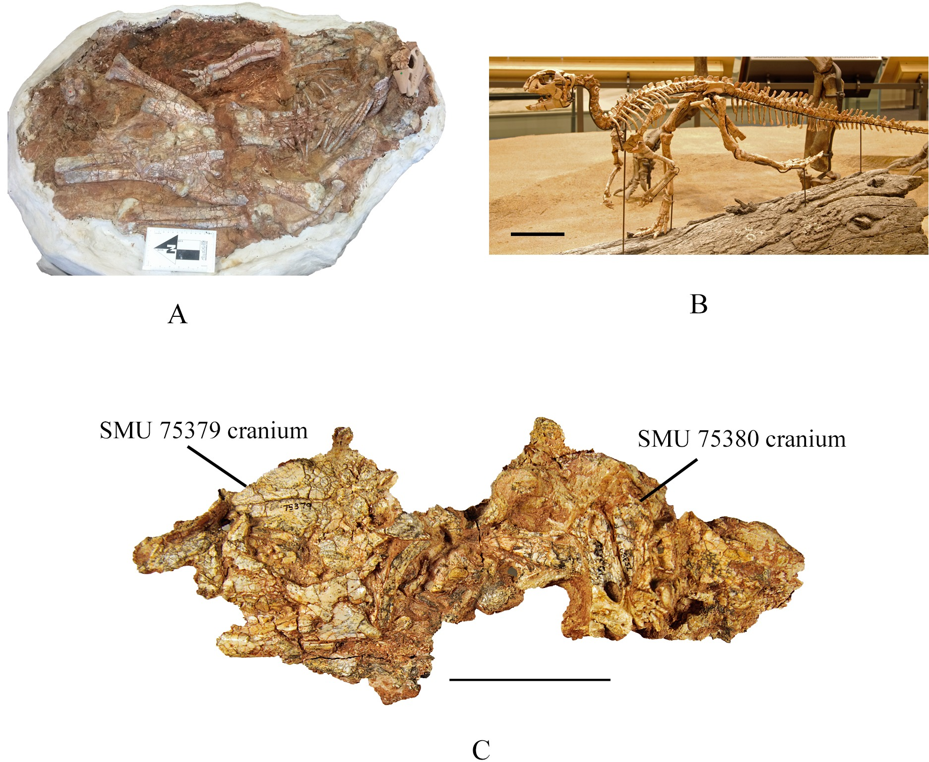 Molde de Hypsilophodon foxii no Museu Americano de História Natural. Espécimes e moldes como este foram usados em estudos comparativos de histologia óssea entre hipsilofodontídeos de diferentes latitudes.