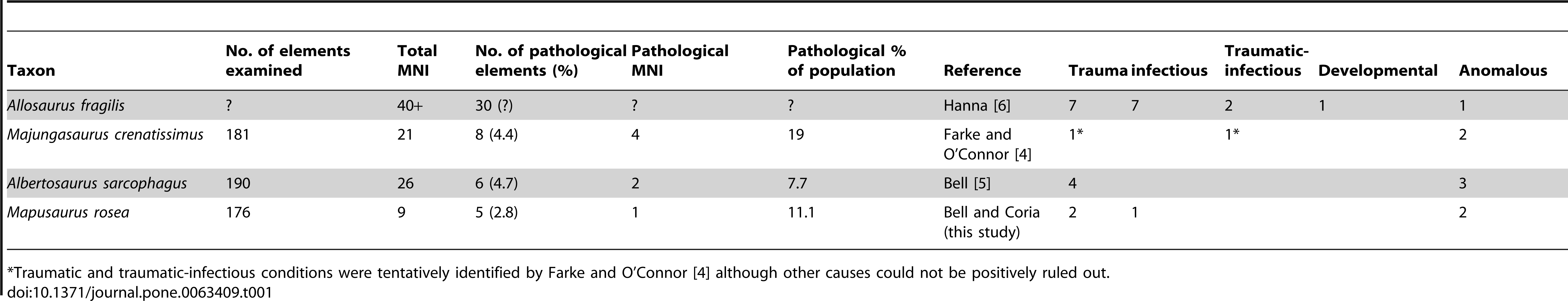 Palaeopathological Survey of a Population of Mapusaurus (Theropoda: Carcharodontosauridae) from the Late Cretaceous Huincul Formation, Argentina