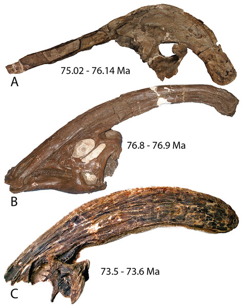 Evans, Bavington e Campione descrevem um neurocrânio incomum da Formação Dinosaur Park, Alberta, que representa o terceiro e maior espécime craniano do gênero Parasaurolophus naquela formação. A análise bioestratigráfica das ocorrências de Parasaurolophus ao longo da Formação Dinosaur Park revela uma distribuição temporal significativa, com implicações para os padrões de diversificação e extinção dos lambeossauríneos durante o Campaniano. O trabalho constata que Parasaurolophus era um elemento raro da fauna da Formação Dinosaur Park em comparação com corithossauro e lambeossauro, possivelmente refletindo preferência por habitats específicos dentro do ecossistema da planície costeira. A análise filogenética posiciona o espécime dentro de Parasaurolophus e discute sua possível atribuição específica.