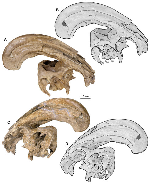 O holótipo e espécime mais famoso de P. walkeri, coletado próximo ao rio Red Deer, Alberta. Preserva o crânio com crista quase completa e elementos pós-cranianos substanciais. Descrito por Parks em 1922, é o espécime sobre o qual toda a taxonomia da espécie foi construída.