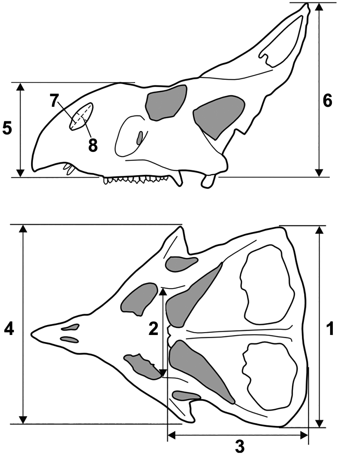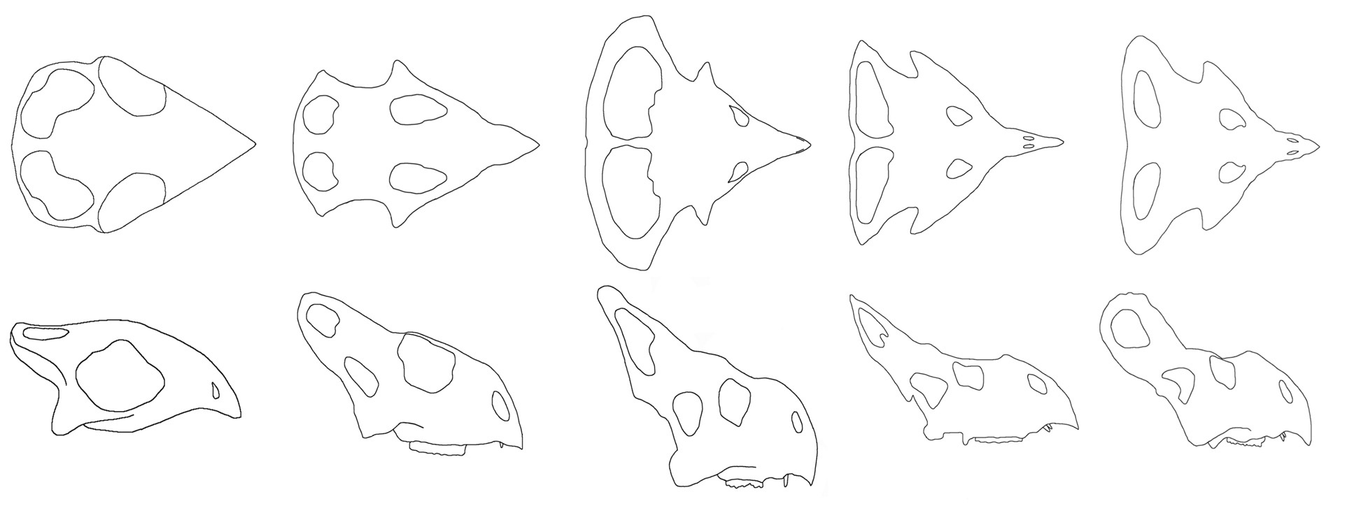 Maiorino e colegas aplicam morfometria geométrica bidimensional a 29 crânios de Protoceratops andrewsi, testando sistematicamente a hipótese de dimorfismo sexual que havia sido sugerida por estudos anteriores com base em diferenças de tamanho de franja e crânio. A análise de componentes principais e MANOVAs não-paramétricas não recuperam separação clara entre hipotéticos 'machos' e 'fêmeas' no morfoespaço craniàno, tanto em vista lateral quanto dorsal. O único caractere com sinal potencialmente dimórfico é a altura do chifre nasal, mas mesmo esse resultado é fraco estatisticamente. A conclusão central é que machos e fêmeas de P. andrewsi possuem morfologias cranianas semelhantes, o que tem implicações profundas para a interpretação da franja como sinal sexualmente selecionado: se machos e fêmeas têm franjas de formas e tamanhos comparáveis, a seleção pode ter sido por reconhecimento de espécie ou sinais sociais mais amplos, não estritamente por seleção sexual.