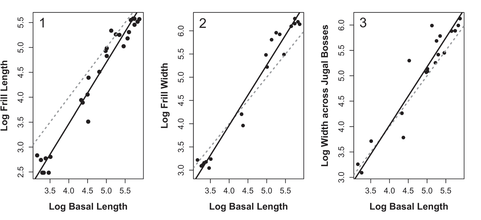 Hone, Wood e Knell analisam 37 espécimes de Protoceratops andrewsi abrangendo quatro classes de tamanho distintas e demonstram que a franja parieto-esquamosal apresenta alometria positiva durante a ontogenia: ela cresce desproporcionalmente maior em relação ao tamanho corporal à medida que o animal envelhece. Os jugais também mostram tendência de aumento relativo. Em contraste, outras estruturas cranianas não apresentam essa alometria exagerada. O padrão é consistente com a hipótese de seleção sexossocial (ornamentos sujeitos à seleção competitiva entre coespecíficos crescem mais rápido que o resto do corpo). Esta foi a primeira análise alométrica multiespécime formal de P. andrewsi e a primeira evidência direta de seleção sobre a franja ceratópsiana em um táxon não-ceratopsídeo. O trabalho foi citado pelo estudo de Knapp et al. (2021) como base para a hipótese de sinalização testada em 3D.